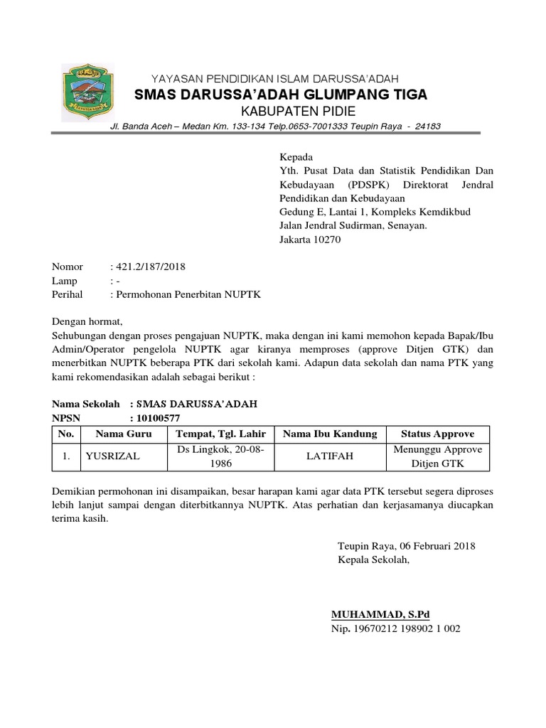 Surat Pengantar Pengajuan Nuptk from imgv2-2-f.scribdassets.com Contoh surat pengantar dari kepala sekolah untuk pengajuan nuptk. Maybe you would like to learn more about one of these? Check spelling or type a new query. We did not find results for: